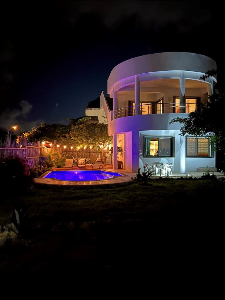 Sitting high above the Caribbean Sea is this beautiful 3 bedroom, 2 bath, 2 kitchen home facing the Caribbean Sea! Two kitchens with modern accessories along with each bedroom that has a Caribbean Sea view. A covered cabana with table and chairs awaits for your morning coffee and evening drinks with the Caribbean breeze blowing through. The roof top has the ultimate views of the island with the turquoise Caribbean out in the fore ground. You can see the cruise ships go by all lit up at night! Beautiful private pool surrounded by tropical landscaped flower beds and different trees line the back yard. This home is located on the south side of this desirable island near the Punta Sur Federal park. You are minutes by golf cart or taxi to the downtown section of the island where great restaurants and stores line the streets. North and Playa El Centro beaches are located on the north side of the island. North Beach is one of the top rated beach destinations in the world. Come get this one!